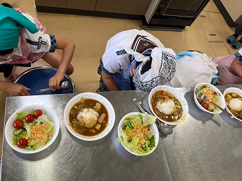 カレーはジュニアが、ポテトチップスサラダはブラウニーとテンダーが作ってくれました。