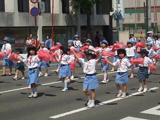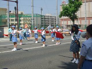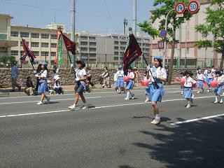 それぞれ国旗、大行進旗、団旗を持って先頭を歩きます。