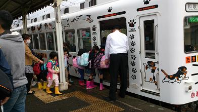 行きは“いちご電車”で、帰りは“たま電車”です!