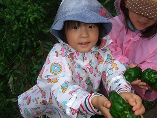あいにくの雨だったけど、ピカピカの野菜をいっぱい収穫できました。