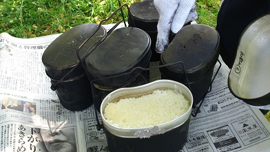 ジュニアは、火おこしと飯盒炊爨の練習をしました。