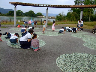 ◎ゲーム ロープの輪の中にお手玉を投げ入れます。うまく入るかな?