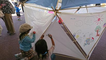 テントにお絵かきのコーナーでは、自由にお絵かきしました。