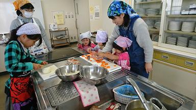 野菜を切ったり、にんじん・ハム・チーズを型抜きしたり、