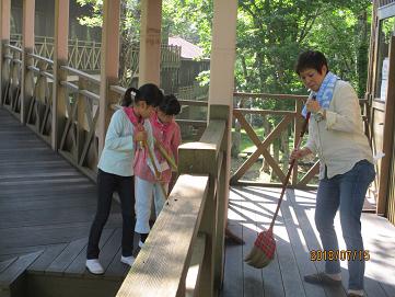 朝は、みんなでお掃除します。きれいにするって、気持ちいいね。