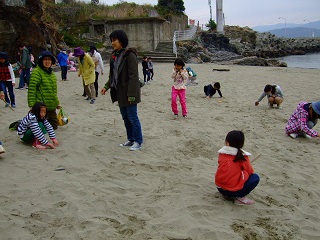 波打ち際で波と遊んだり、ゴミ拾いもしました。