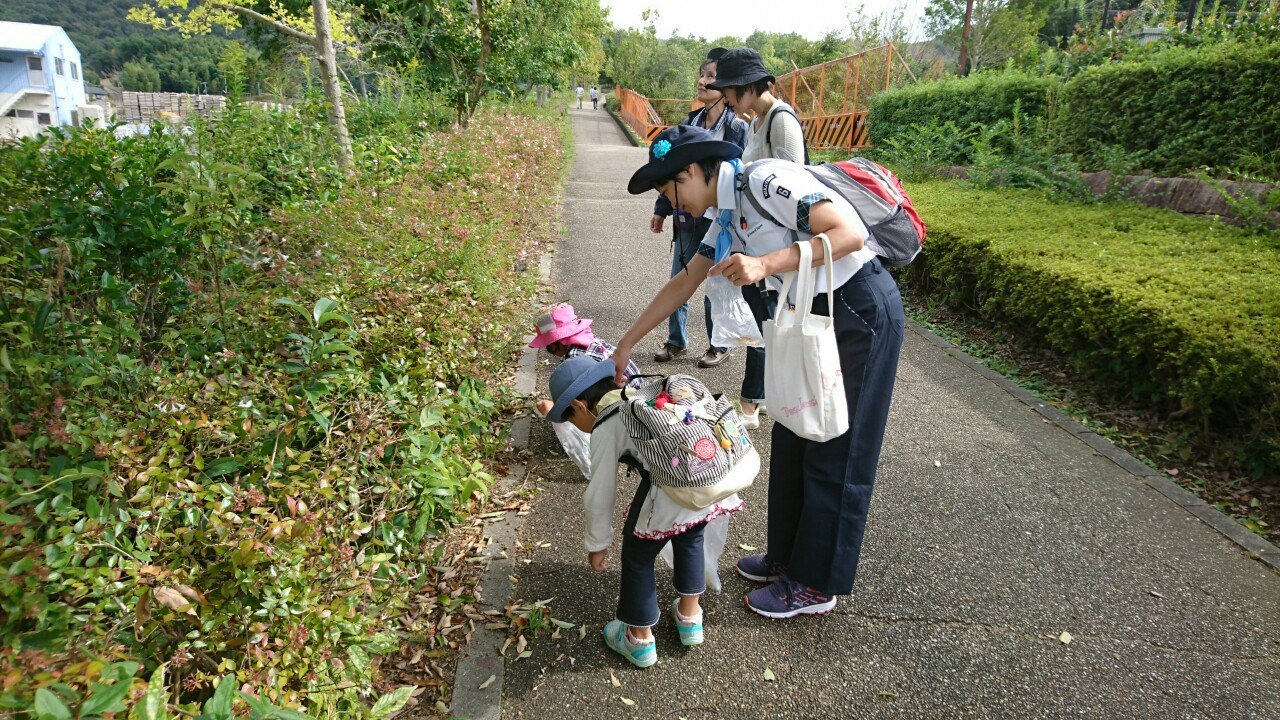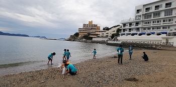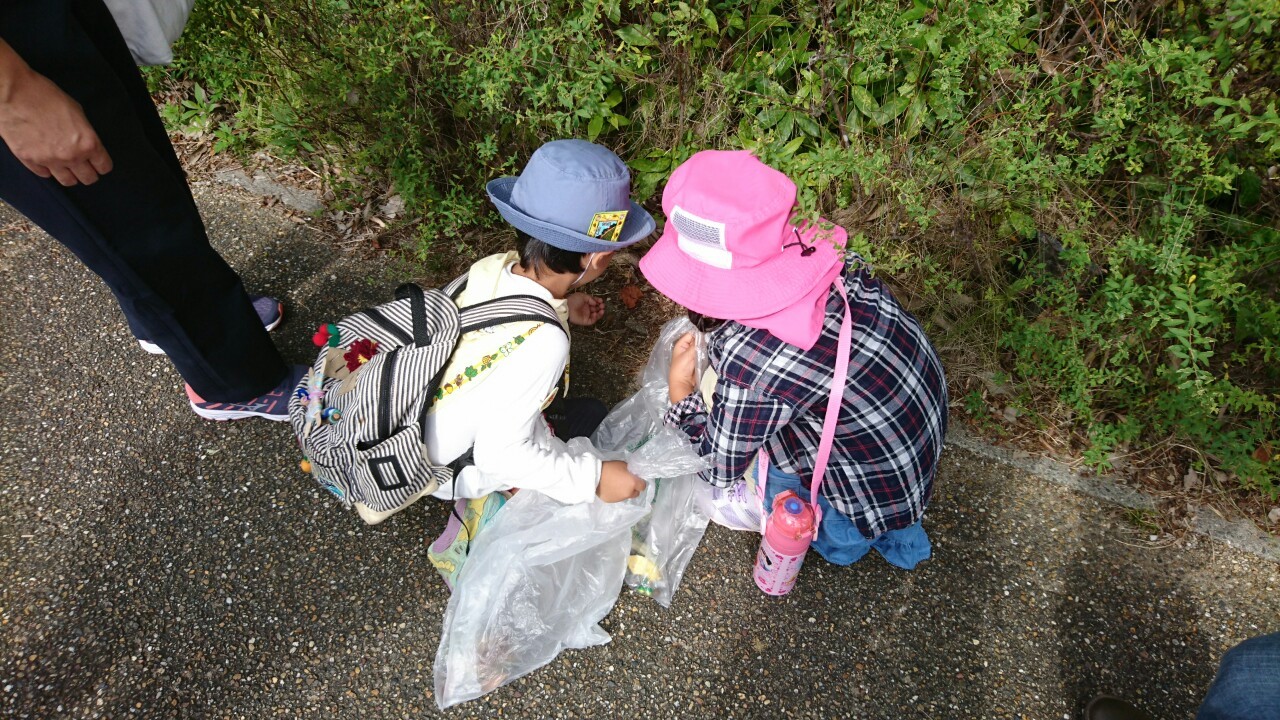 和歌浦の砂浜で、ゴミ拾いをしました。大きなゴミは意外と少なかったのですが、発泡スチロールのカケラ、お菓子の袋、トウモロコシの芯など色々見つかりました。今までに聞いた話を思い出して、それぞれどこから来たゴミか、考えて発表しました。今日一日で、ゴミ袋いっぱいのゴミを拾いました。これが、魚一匹、鳥一羽でも助けることに繫がるといいですね!
