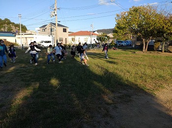 「だるまさんがころんだ」の掛け声を「トリックオアトリート」に変えたハロウィーンバージョン。鬼までたどり着いたスカウトはここでもおやつを獲得。リーダーからの指令にも上手に答えていました。