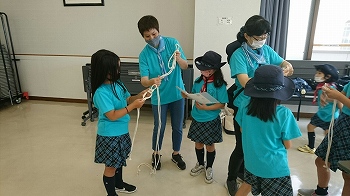 そのあと、ブラウニーは今年度どんな活動をしたいかを話し合い、ロープワークでスカウト技術を学びました。