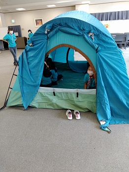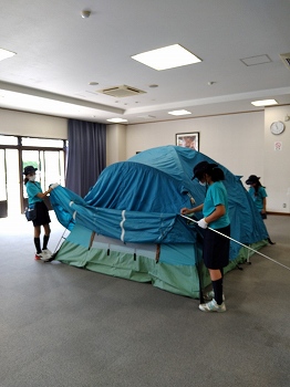 ジュニアはSDGsの説明とテント設営練習をおこないました。