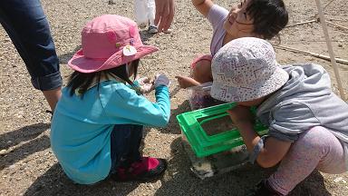 ふれあい動物園では、ヤギやウサギと遊びました。