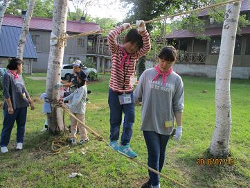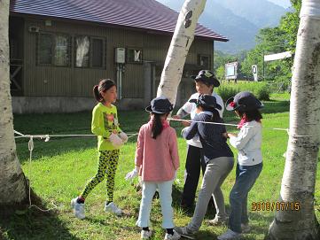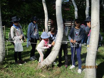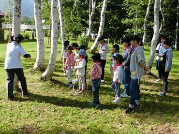 ロープを木に結ぶには・・・みんなちゃんと見てますね。