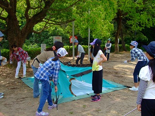 ジュニアは、テント立ての練習をしました。