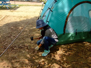 ペグを打つ練習もしました。