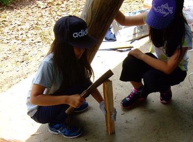 薪を割って、火おこしの練習もしました。