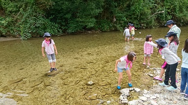 お昼からは、川で泳ぎました。ザリガニも見つけました。