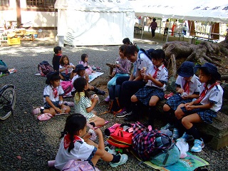 伊太祁曽神社まで歩いて、お昼ごはん。みんなでスカ弁を食べました。