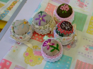 折り紙の大きさの布を折って、ゴムや安全ピンをつけて、