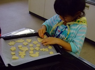 ジュニアに作ってもらったクッキー生地を型で抜いて、