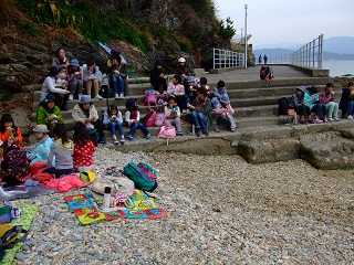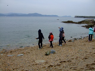 蓬莱岩に到着。ここでは“貝殻集め”をしました。
