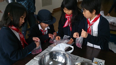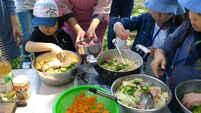 ブラウニーと体験のお友だちは、ポテトサラダを作りました。