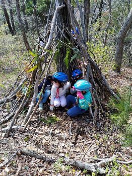 午後は秘密基地作り。アイデアと力を出しあって、パトロールで基地を完成させました。自分たちの秘密基地のこと、うまく説明できたかな?